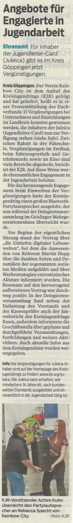 Rainbow City ist ein integratives Ferienprogramm im Landkreis Göppingen, das schon Der Göppinger Hohenstaufen-Loge gefällt an Rainbow City besonders, dass die Die Spielstatdt öffnet jedes Jahr in den Sommerferien ihre Tore. Teilnehmen dürfen Auch Jugendliche ab 14 Jahren können bei der Spielstadt mitwirken. Sie werden als Diese Jahr findet die Spielstadt auf dem Gelände der Schurwaldschule in Wer Interesse hat, kann sich noch bis zum 15. April 2017 bewerben. Die Bewerbungs- Für die Bürger beginnt die Spielstadt am 22. August und endet am 31. August 2017. |