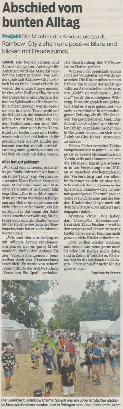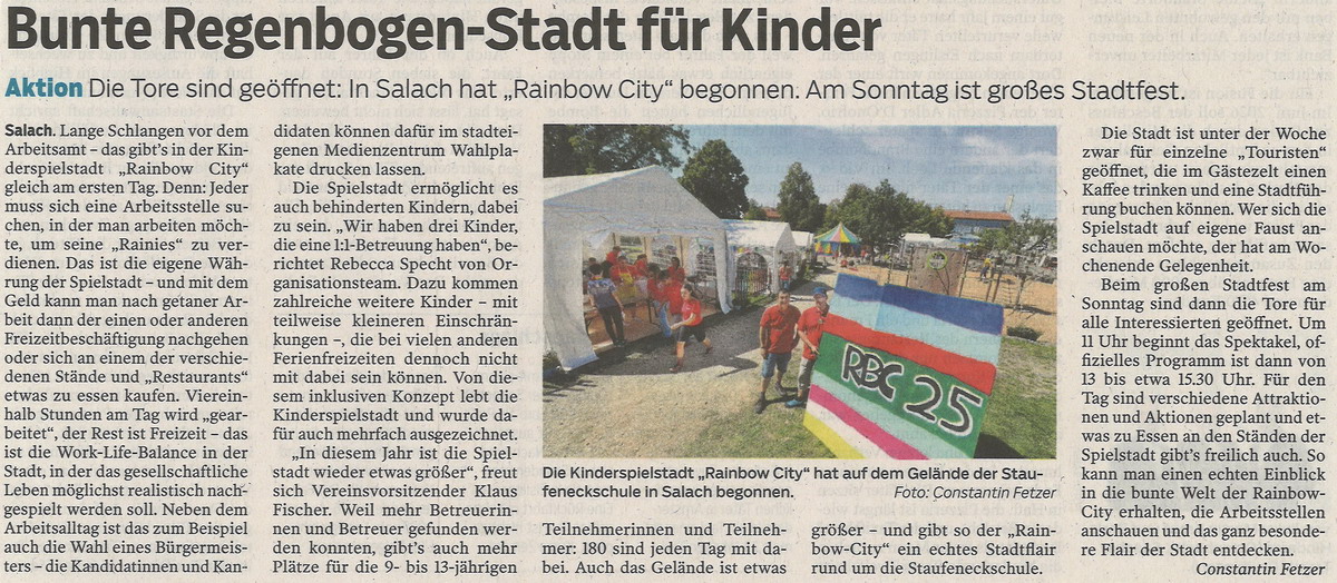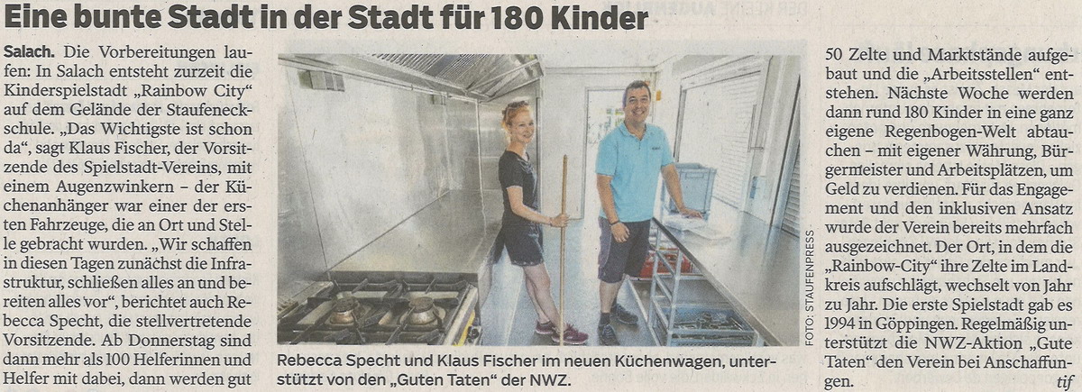 In der Spielstadt Rainbow City ist diese Tatsache zur Grundlage eines Erfolgskonzepts geworden. Jedes Jahr schlägt die Rainbow City die Zelte in einem anderen Ort im Landkreis Göppingen auf und öffnet ihre Tore für bis zu 200 Kinder zwischen neun und 13 Jahren.