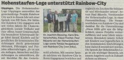 Auch im Jahr 2023 hat die Hohenstaufen-Loge Rainbow City wieder mit einer Spende über 500.-€ unterstützt.
