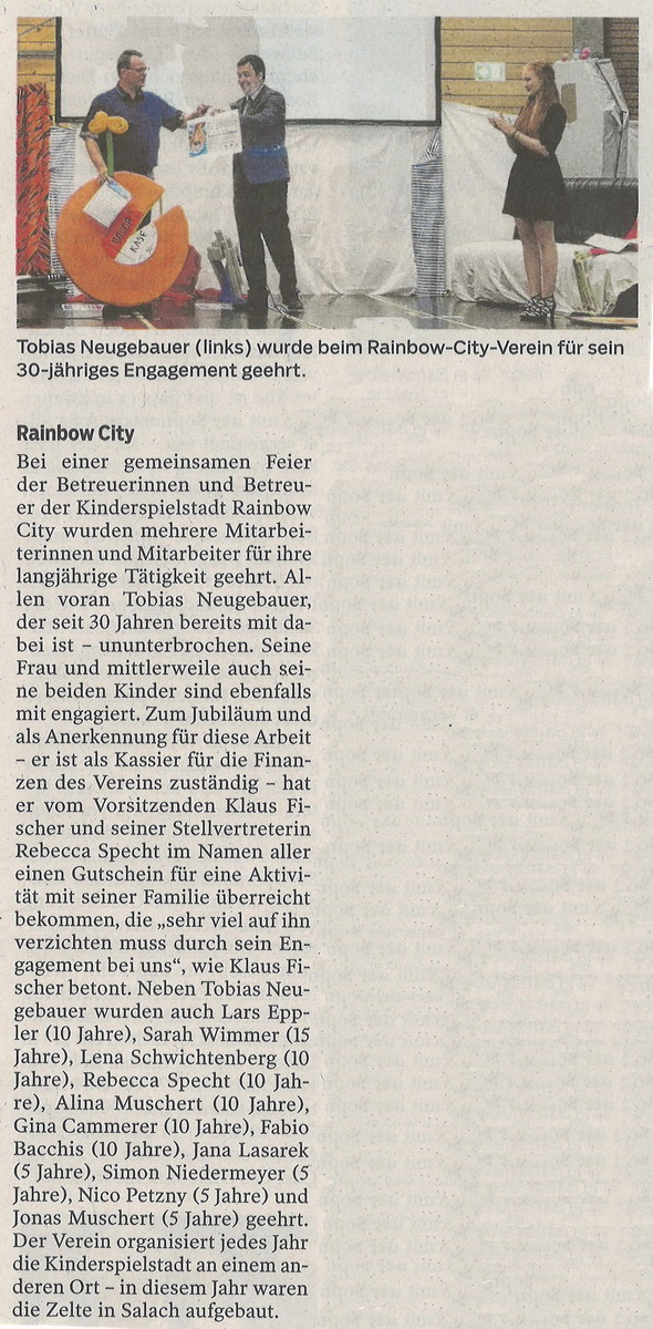 Rainbow City - Hohenstaufen-Loge gratuliert zum Jubiläum! Rainbow City veranstaltet ihr Ferienprogramm für Kinder und Jugendliche |
