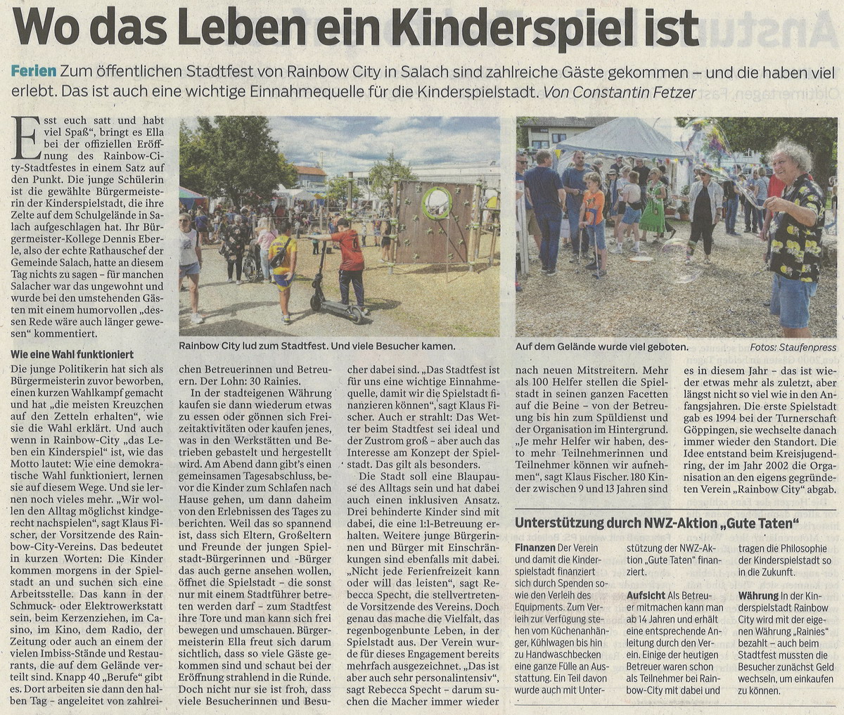 In der Spielstadt Rainbow City ist diese Tatsache zur Grundlage eines Erfolgskonzepts geworden. Jedes Jahr schlägt die Rainbow City die Zelte in einem anderen Ort im Landkreis Göppingen auf und öffnet ihre Tore für bis zu 200 Kinder zwischen neun und 13 Jahren.